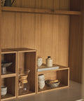 En lille eksklusiv bog-og vægkasse i massivt egetræ, designet til at løfte din indretning i hjemmet – både æstetisk og funktionelt.