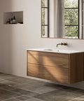 Oplev skønheden i ægte håndværk med vores snedkerlavede badeværelsesmøbel med skuffer i massiv valnød. Med eksklusive fingertappede samlinger og et tidløst design, bringer dette badeværelsesmøbel en enestående kombination af funktionalitet og æstetik til dit badeværelse.